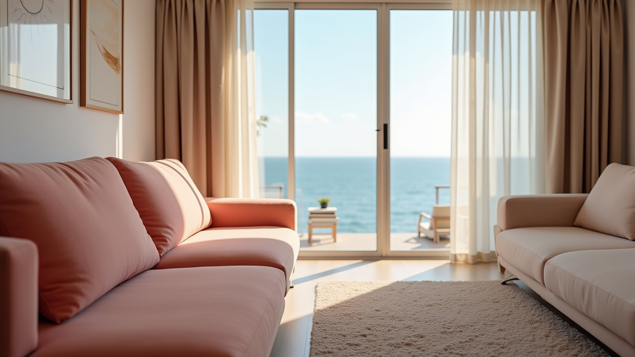 Looking for the perfect getaway? This spacious apartment accommodates up to six people, featuring a comfortable living room and two cozy bedrooms, all with stunning sea views. Enjoy the fresh air on the terrace, complete with a, perfect for evening gatherings. With both heating and air conditioning, you'll stay comfortable year-round.